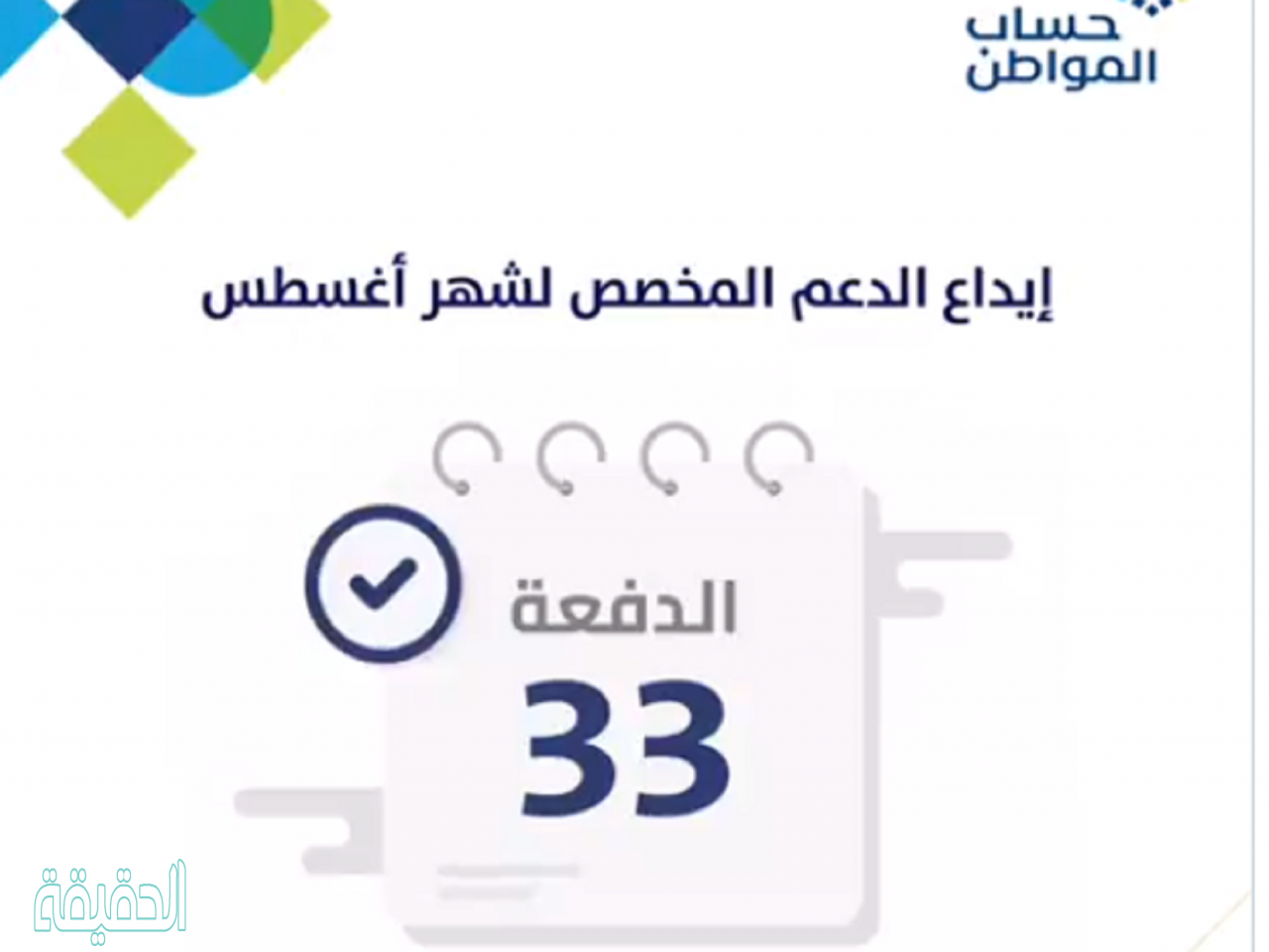 حساب المواطن الدفعة 33 والتي سيتم صرفها خلال ساعات لكافة المستفيدين والمسجلين للدفعة الحالية من حساب المواطن.