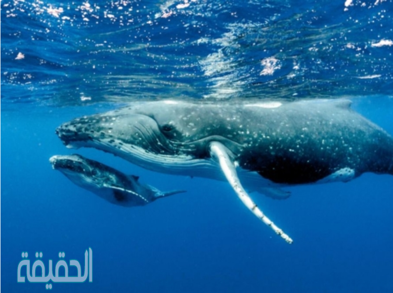 شرح نشاط يزداد وزن مولود الحوت الأزرق حوالي 90 كجم يوميا