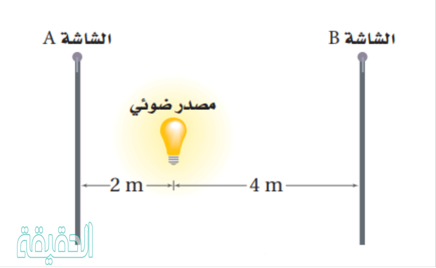 • الإجابة الصحيحة : تتناسب الاستضاءة على سطح ما طرديا مع شدة إضاءة مصدر الضوء وعكسيا مع مربع المسافة بين السطح و مصدر الضوء.