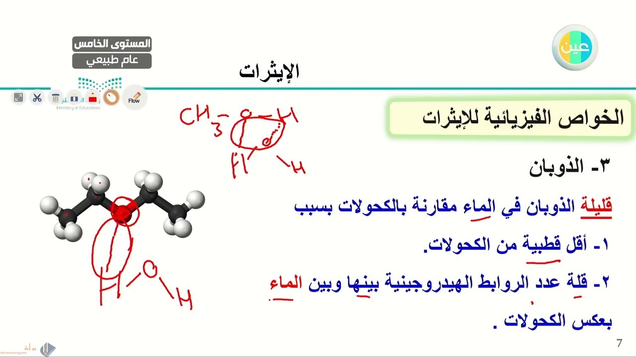 ذوبان الإيثرات في الماء أقل من ذوبان الكحولات في الماء، تقوم الجهة التي تختص بوضع في الممكلة العربية السعودية؛ بتحديد شكل المنهاج الذي تقوم بتدريسه، وتقوم بالتشكيل في الاسئلة التي يتلقاها الطالب ويقوم بحلها، فمنها ما هو موجود في الكتاب المدرسي، واجابته ايضا موجود، ويوجد هناك بعض الاسئلة الموجودة في الكتاب المدرسي ولكن الاجابة التي تختص بها؛ تحتاج الى البحث والتنقيب لاجل الوصول لها، وليس ذلك لتكلفة الطالب مزيدا من الجهد، إنما لأجل تنمية مهاراته البحثية وقدرته على استكشاف الاجابة، وبالبناء على ذلك سنقوم بعرض اجابة احدى اسئلة الكتاب المدرسي خلال الاسطر القادمة من المقالة، تابعونا.
