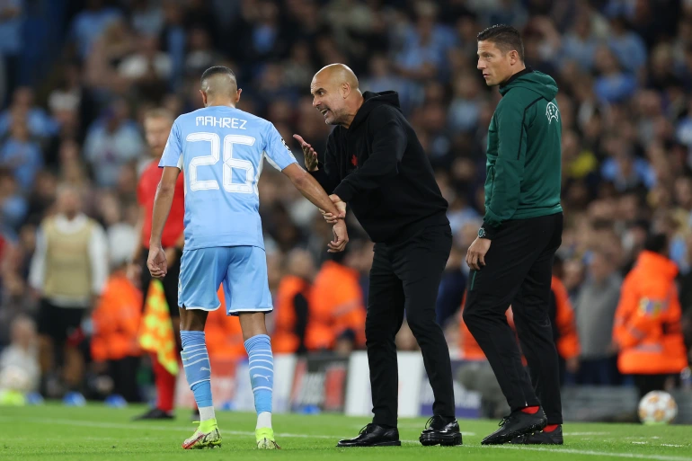 قبل البدء في المباراة بيب قرر التخلي عن محرز بشكل واضح، لعب دوره المهاجم البرازيلي، قال انني اردت جناحي قدم يمنى، يمكنني ان العب في القدم اليمنى وجناح يمكنني اللعب في القدم اليسرى، كانت خطه بيب واضحه بانه لا يريد محرز ان يكون ضمن المباراة وكانت الفكرة هي مواجهه جبهه مانشستر الأقوى حتى يميل رونالدو الى الاستلام الكره عده مرات وهذه سبب غياب محرز عن المباراة اليوم، حيث ان محرزه من اللاعبين لمانشستر الأقوياء.