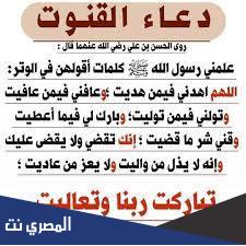 اللهم اهدني من هديتني عافية من شفيت واعتني بمن رحتني وبارك لي بما اعطيت. احميني من شر ما قضيت لانك ستدين ولا تدان. ولا يذل من يكون وليا ، ولا يكرّم من هو بينهما ، مبارك ربنا وعالي “.
