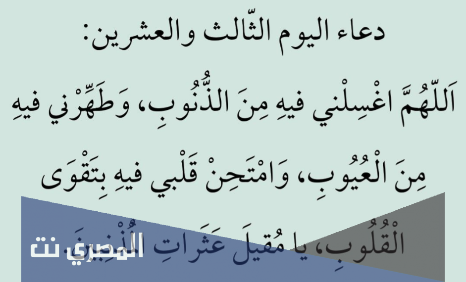 - الدعاء للثالث والعشرين من رمضان ، اللهم إني أريد ترك الذنوب ، وقلبي ثابت في دينك ، ونور قلبي بنور الإيمان ، وأنا أصوم جنتي وصلاة. بنت عيني.