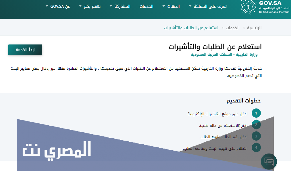 يجب على من يرغب في الاستفسار عن طلب زيارة الدخول إلى الموقع الرسمي لوزارة الخارجية واتباع الخطوات التالية: