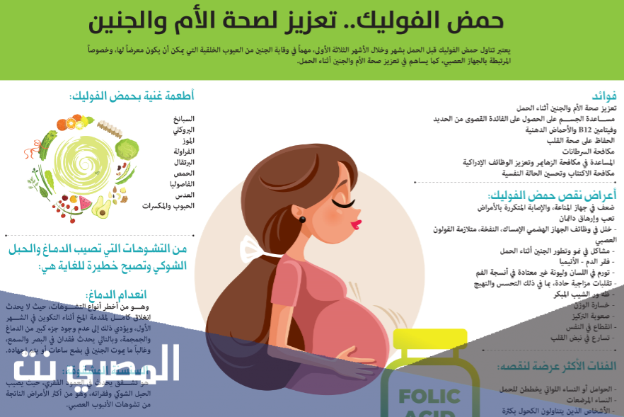• يساعد حمض الفوليك في تنظيم عملية تكوين الخلايا العصبية في الجنين.