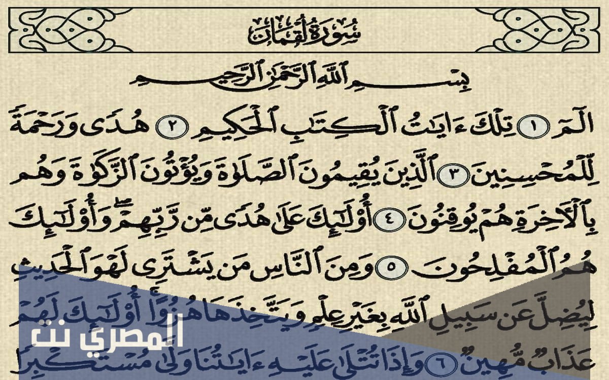 تفسير حلم رؤية أو سماع سورة لقمان في الحلم