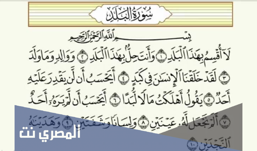 - وإذا رأى الإنسان أنه يقرأ سورة البلد في المنام وهو يعاني من هموم.