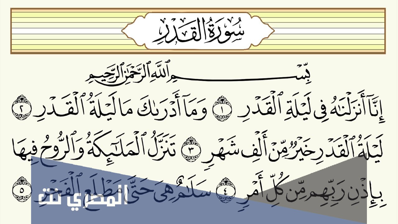 - ويقول أيضًا إن رؤية سورة القدر في المنام يدل على أن الله سيوفر لهذا الشخص رأي الحلم كثيرًا من الخير في حياته وأيضًا بعد وفاته.