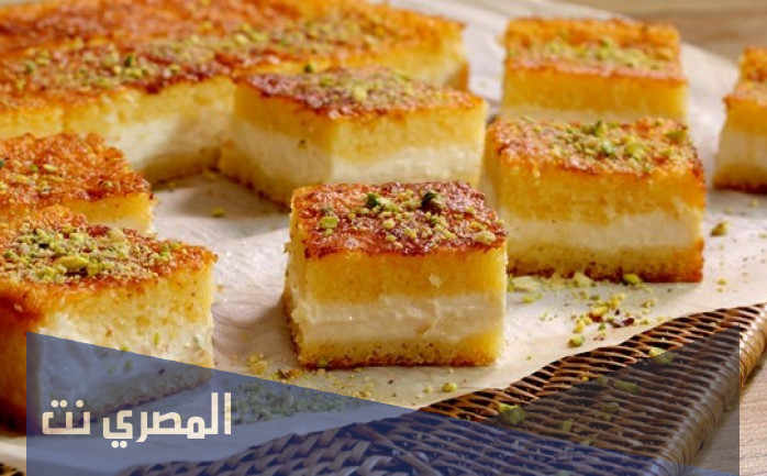 - ثم تقطع البسبوسة بالشكل المفضل سواء على شكل مربعات أو مستطيلات.