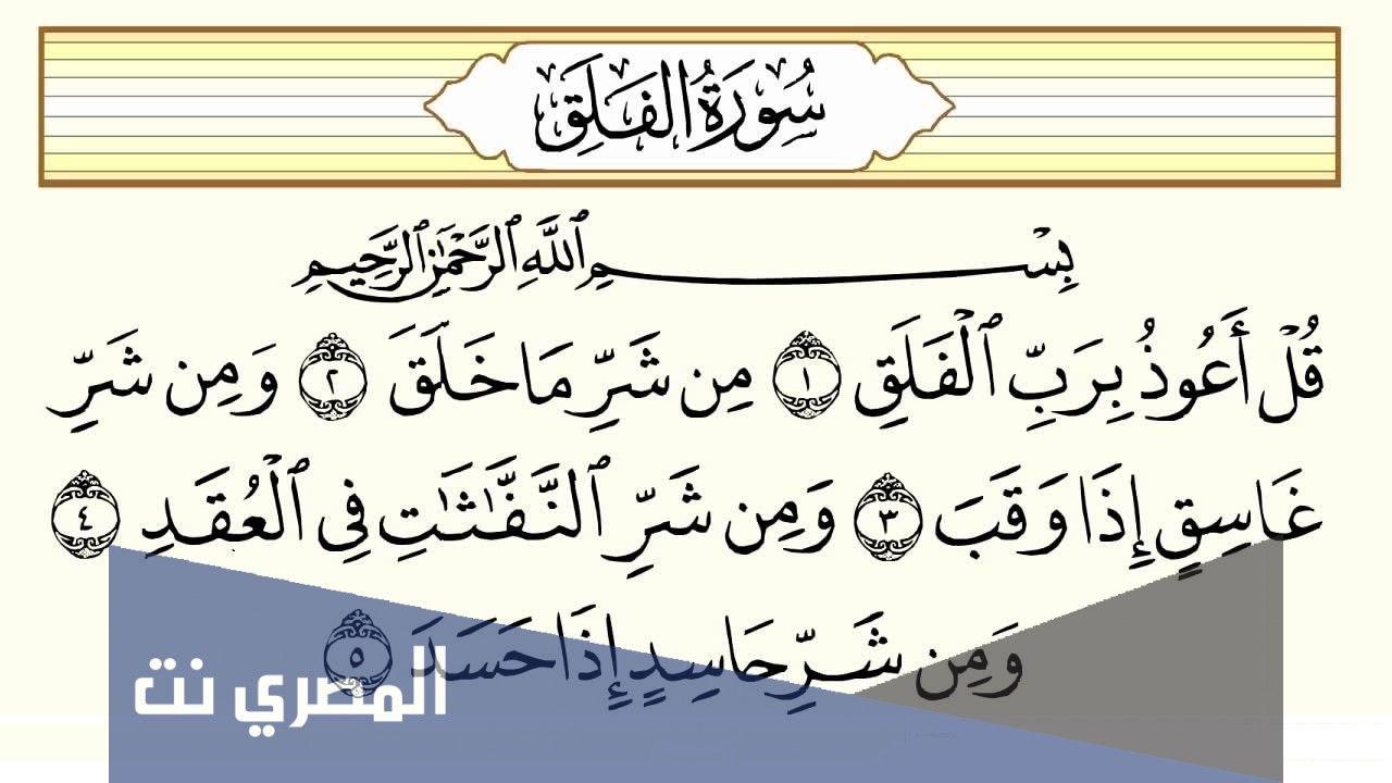- رؤية تلاوة سورة الفلق للرجل يدل على نعمة في ماله وأهله وعمله وحفظه.