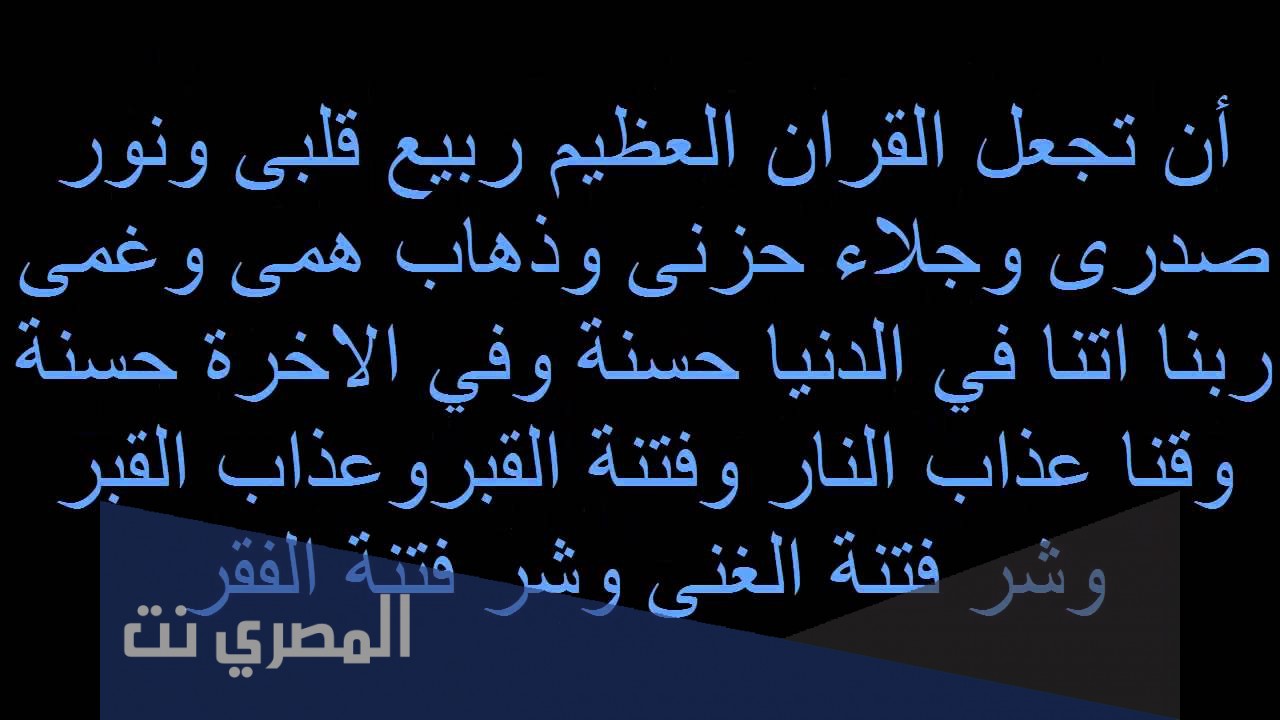 - يا الله ، أنا عبدك ، ابن عبدك ، ابن أمتك ، ناصيتي في يدك ، أنا أمضي في حكمك ، أنا عادل في حكمك ، أسألك بكل اسم لك ذلك سميت نفسك أو نزلت في كتابك أو علمت أحد خلقك أو حفظت بعلم الغيب معك: أن تجعل القرآن ينبوع قلبي نور قلبي. صدري مزيل حزني ويزيل قلقي وحزني.