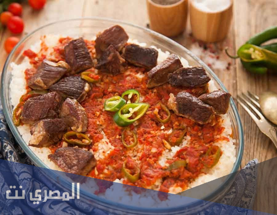 - تقدم فتة مصرية بالخل والثوم مع الحناء والشفا مع أرز أبيض.