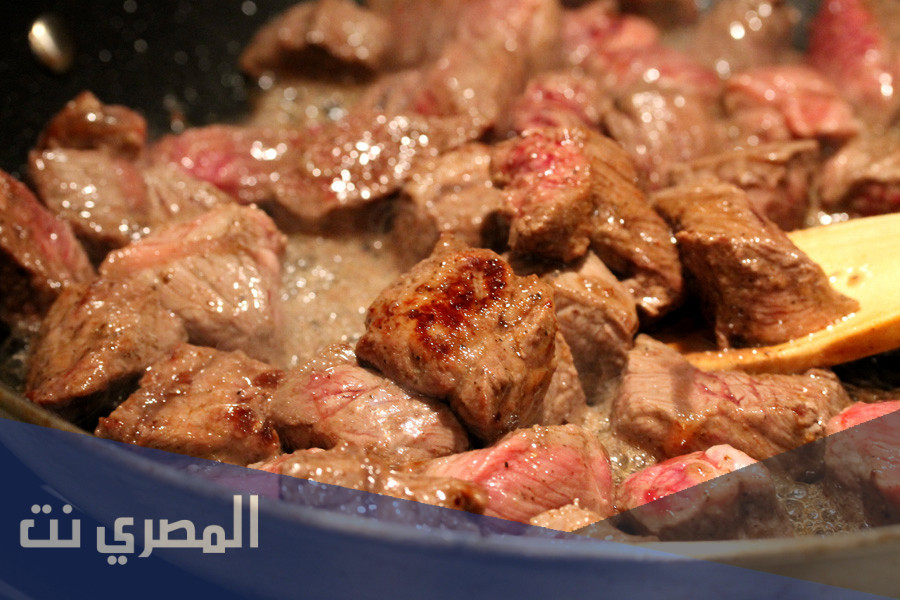- نقطع اللحم إلى قطع صغيرة أو مكعبات ويفضل أن تكون صغيرة السن حتى لا تستغرق وقتاً طويلاً أثناء النضج.