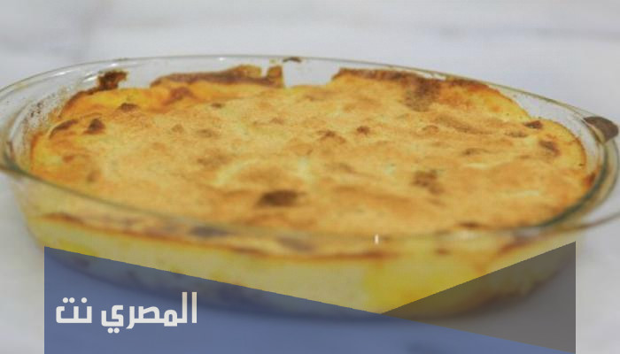 • يُسكب مزيج اليقطين في الصينية ويُوزّع بالتساوي.