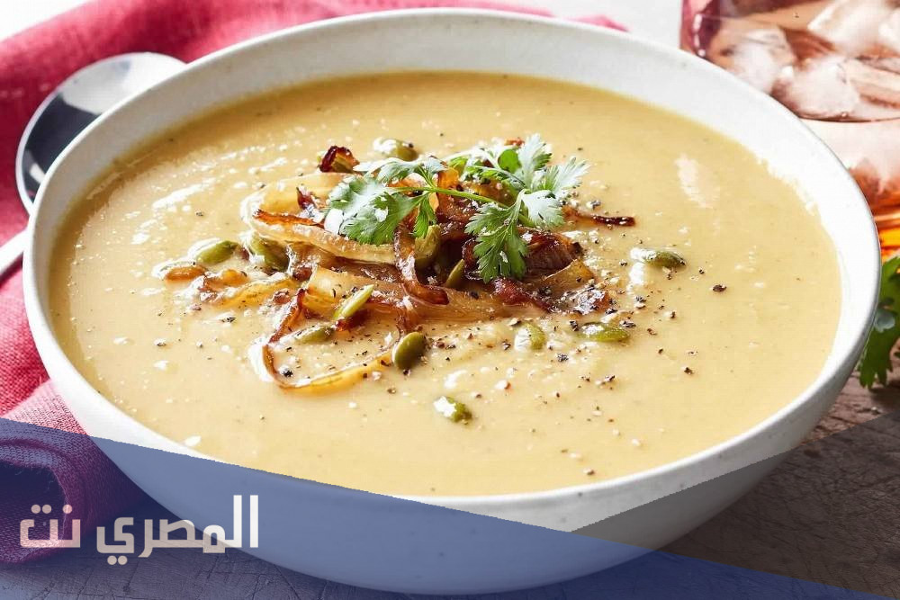 • يُسكب المزيج في أطباق التقديم ويُزين بالبصل الأحمر ويُقدم ساخنًا أو باردًا حسب الذوق.