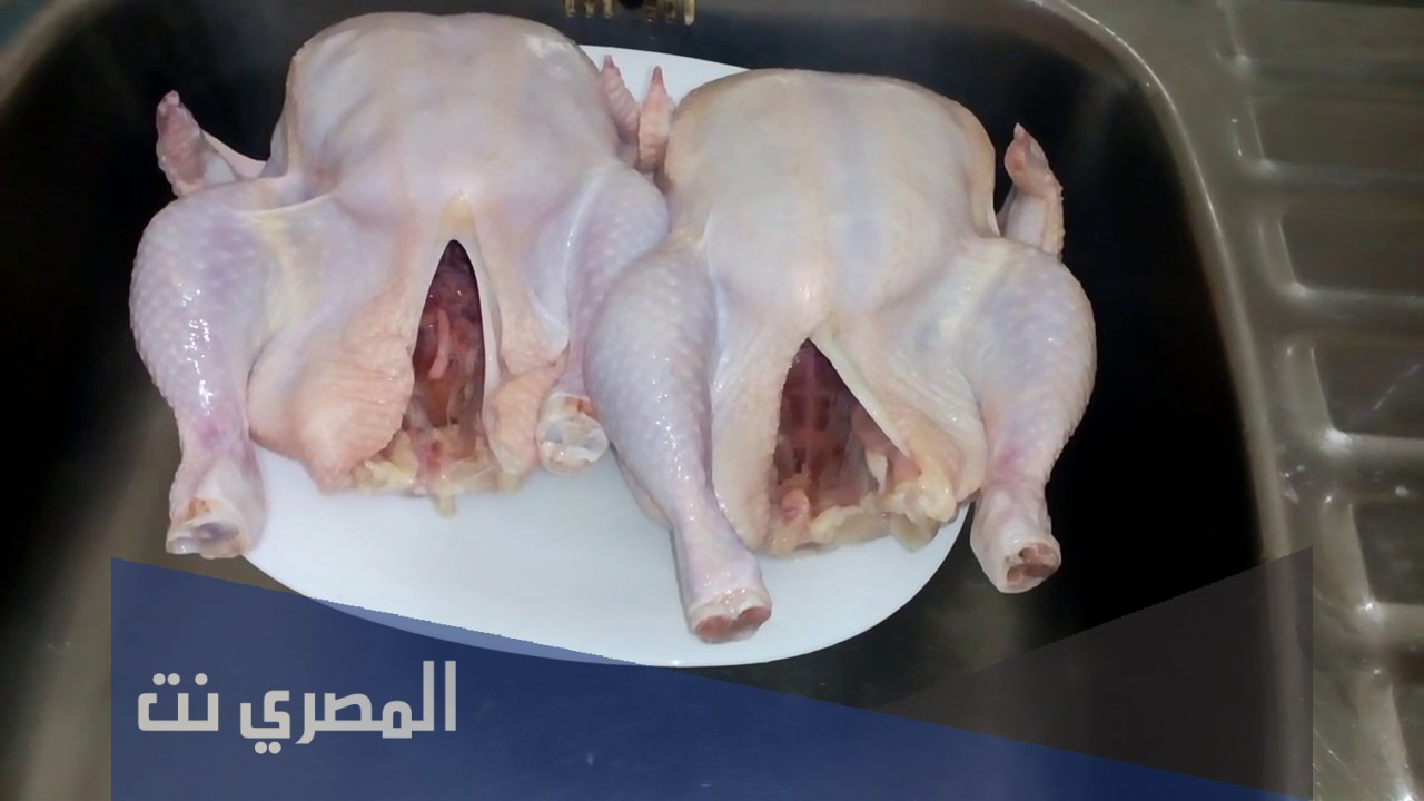 - بعد إزالة الريش وغسل الدجاج جيداً.