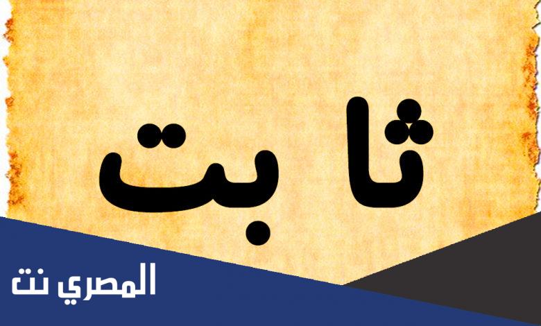 اسم ثابت من الأسماء العربية الجميلة واللطيفة التي يمكن أن يطلقها على الذكور ، ولا يقتصر معنى اسم ثابت على الراسخ بل يشمل بعض المعاني الأخرى مثل ثابت أو دائم في مكانه أو الإصرار على رأيه أو من لا يغير أو شجاع أو شجاع أو حجة وبرهان.