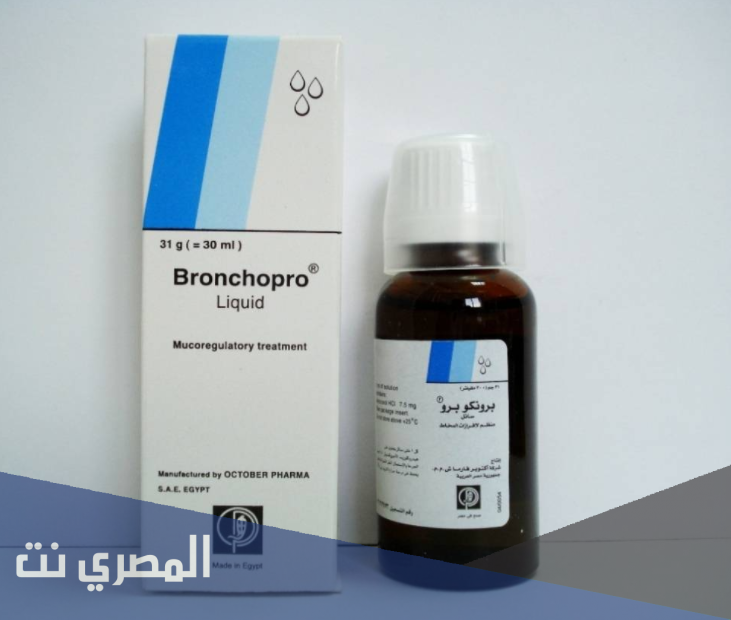 دواء برونكوبرو Bronchopro دواعي الاستعمال والآثار الجانبية، برونشوبر  عامل حال للبلغم نشط سريريا مثبت سريريا  عند تناوله عن طريق الفم، يحدث بدء العمل بعد حوالي 30 دقيقة يؤدي تكسير ألياف عديدات السكاريد المخاطية الحمضية إلى جعل البلغم أرق وأقل لزوجة، وبالتالي يسهل إزالته عن طريق السعال على الرغم من انخفاض حجم البلغم في النهاية تظل لزوجته منخفضة طالما استمر العلاج، ويأتي على شكل كبسولات بجرعات علاج لها القدرة الفعالة على التخلص من السعال نتيجة الاحتقان.
