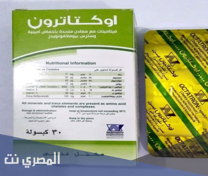 دواء اوكتاترون Octatron دواعي الاستعمال والآثار الجانبية، أوكتاترون كبسول دواء كيميائي يحتوي على العديد من العناصر الغنية بالفيتامينات التي تساعد على إمداد الجسم بالطاقة والحيوية، فإن استخدام أوكتاترون مفيد للضعف الجنسي عند الرجال كما أنه يحتوي على مادة الزنك، التي تعمل على تحسين معدلات الخصوبة وزيادة قوة النشاط الجنسي، وزيادة القدرة على الإنجاب عن طريق تحسين حالة السائل المنوي وتحسين صحة الحيوان المنوي وزيادة سرعته وتقويته في الوصول واختراق البويضة، بالإضافة إلى دوره البارز في إتمام عملية الإخصاب بنجاح.