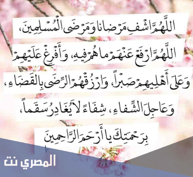 (اللهم اشف مرضانا ومرضانا مع المسلمين اللهم ارفعهم ما هم فيه ، وأفرغهم هم وأهلهم من الصبر ورضاهم وأرزقهم بالقضاء ، وشفاء عاجل ، شفاء لا يترك أثرا للمرض ، والرحمة ، يا الرحمن الرحيم)